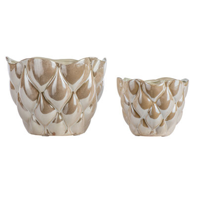 Dekorativní keramický květináč s výrazným plastickým vzorem a s perleťovým nádechem. Výška je 11cm. Materiál je keramika s lesklou glazurou.