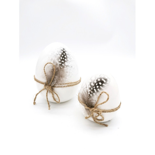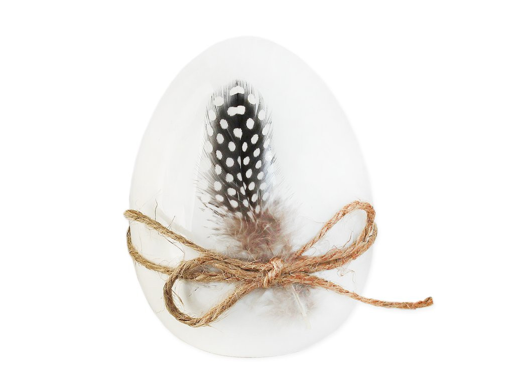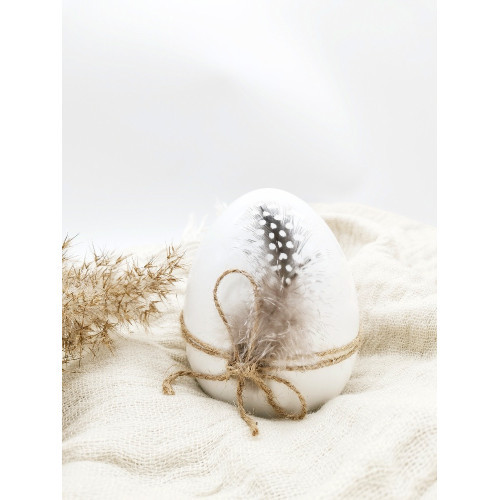 Keramické velikonoční vajíčko dekorované peříčkem a provázkem, je elegantním doplňkem do interiéru pro jarní aranžmá. Slouží jako sezónní dekorace. Barva bílá. Materiál keramika. Výška je 12cm.