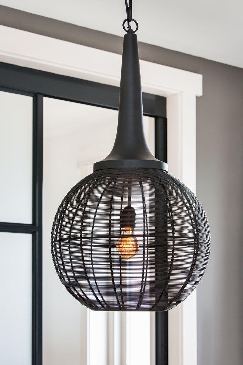 Lustr Adrienne se vyznačuje stínidlem z jemných kovových drátků, které po rozsvícení vytváří v interiéru zajímavou hru světla a stínu. Materiál je kov. Barva černá. Průměr stínidla je cca 57cm a výška 112cm. Energetická třída A.