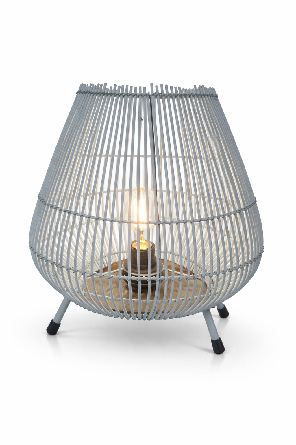 Stolní lampa v boho stylu s proutěným stínidlem na nožkách. V barvě mint. Výška 33cm a šířka 28cm.