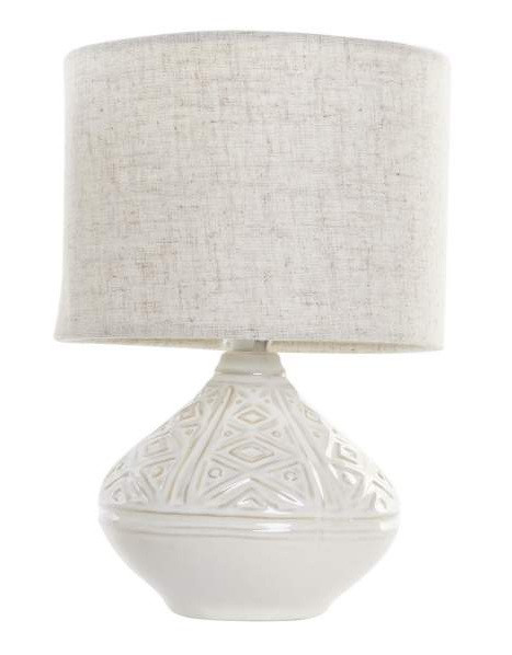 Stolní lampa Ikat má kameninový podstavec s reliéfním zdobením a textilní stínidlo se vzhledem lnu v krásném béžovém provedení. Dá se kombinovat v klasickém i skandinávském stylu. Výška je 30cm a šírka 20cm.